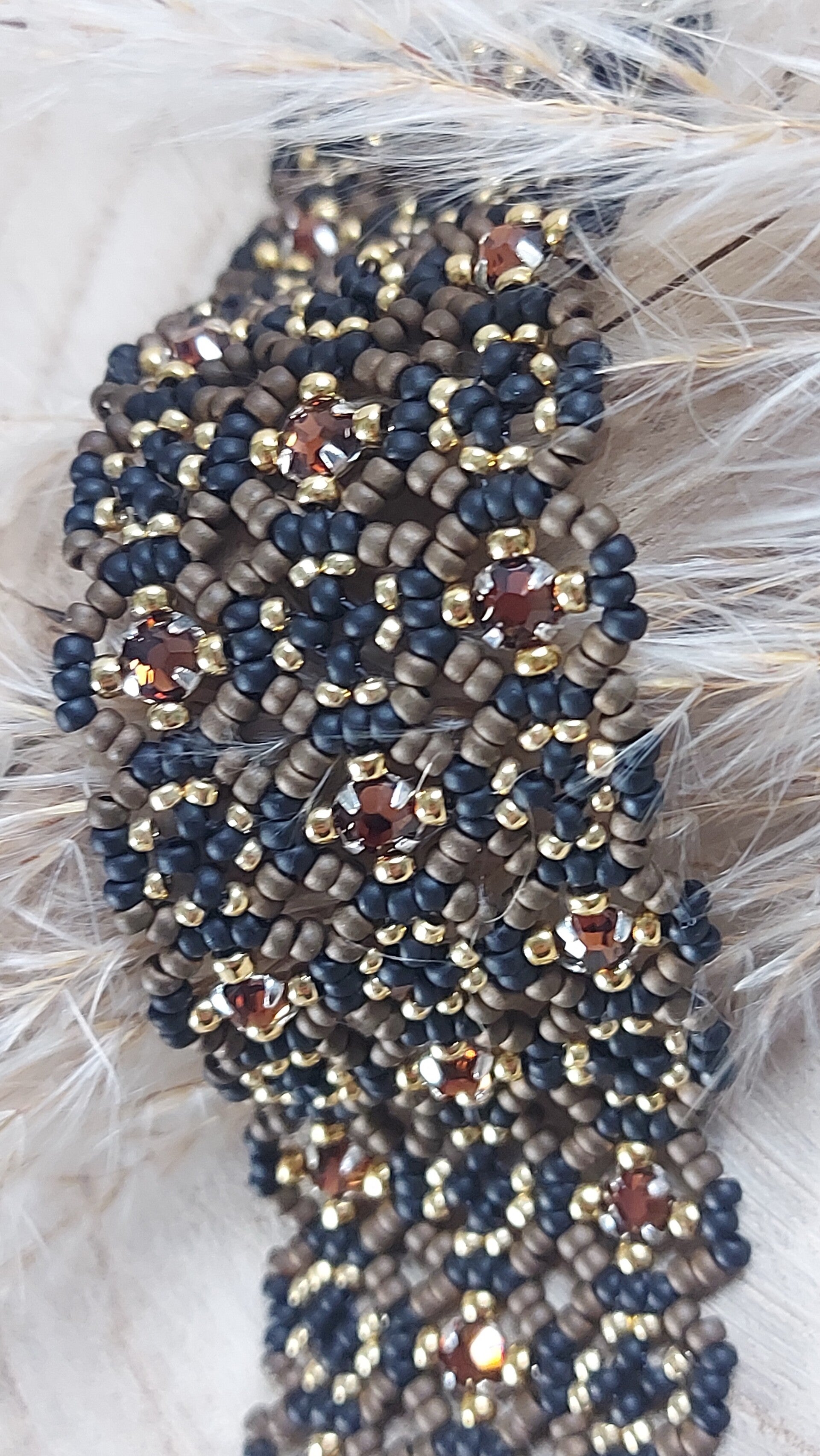 Bracelet manchette en perles Miyuki haute qualité teintées dans le masse et Swarovski incrustés