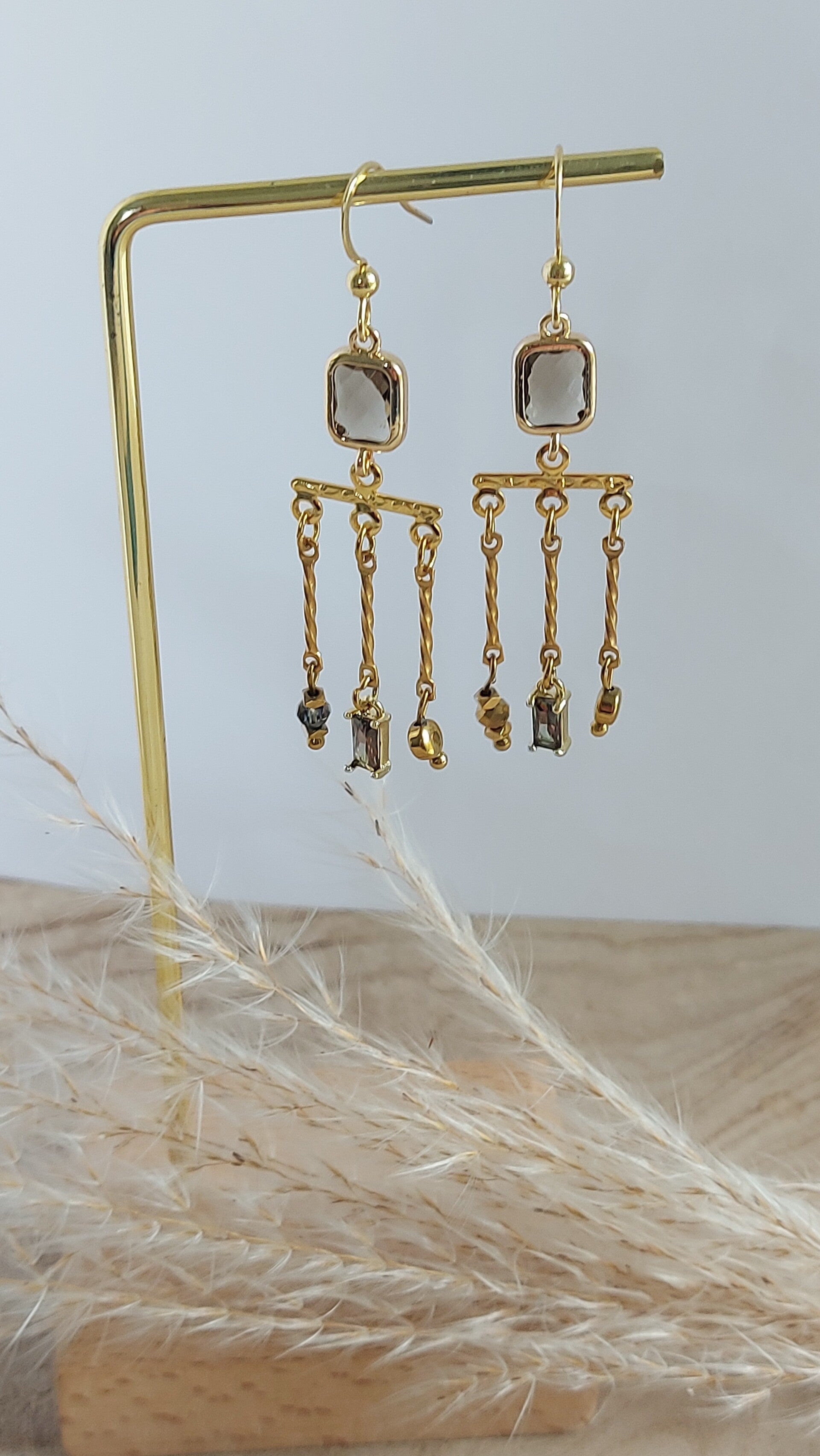 Boucles d'oreilles en acier inoxydable et pierres en verre serties